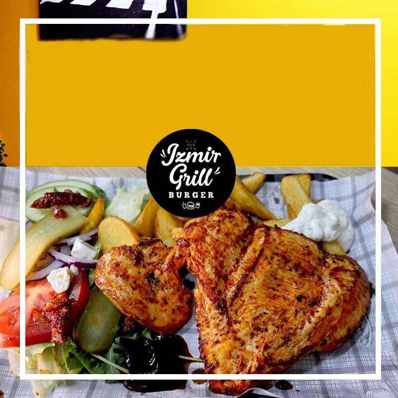 Pierś grilowana, ćwiartki ziemniaków , surówki , sos tzazyki